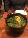 Unique dumplings with great flavors. We also had the crispy duck salad which has a boring name but is spectacular. Fried duck leg/thigh and a delicious salad. Duck was moist and crispy. Salad was perfectly dressed (and where did they get a perfect avocado in December?) Also delicious were the crab and duck dumplings — they came with Thai curry vegetable that were light and went surprisingly well with the dumplings.