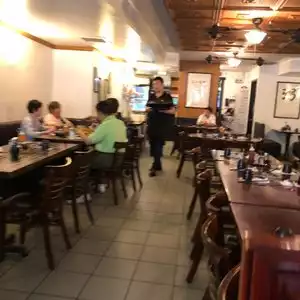 5 of us enjoyed our lunches on a Saturday afternoon. We decided to dine there with our 'Big Apple Greeter', and we all found the meals tasty, and enjoyed a nice rest/break from our long walking tour. Staff was friendly. The only negative thing for me was, that when I was taking a bite from my potato skin meal, there was something very hard in it, and it made an awful crunching sound, that the others heard, and it hurt my tooth (I thought I had broken my tooth). Small, black, round thing, that I dumped on my plate. It shouldn't have been in there! I should have mentioned it to them, but didn't want to embarrass our 'greeter'. My mouth is still sore, at times, on that side 10 days later! Enjoyed the Halloween decor, as I love Halloween!