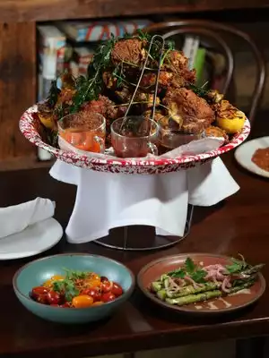 Had a fun meal with a delightful waitress in a fun and artistically decorated dining area. It can be a bit noisy because it is open. Great food. The deviled eggs were a treat. The seafood pasta/bucatini delicious. Fun night out.