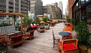 This is a lively and loud gathering place on the 14th floor of the Refinery Hotel on 38th Street. $16 for a glass of wine, but if you have to ask .... NYC. Great view of Empire State Building !! Very nice starting place for your night. Enjoyed it !!
