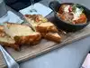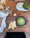 Arrived before lunch as we were without a reservation as the website would not allow small party bookings. Front of house was not welcoming at all, she offered a table inside and I understood and asked if we could be moved outside if a table became available after we sat down. Once we were sat, the food that came was delicious, but be aware that the appetiser houmous is definitely a sharing portion. The grilled corn flat bread pizza was beautiful.