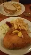 We had the Wiener Schnitzel.....both the Chicken and Veal versions. The Chicken servicing was huge...nearly filled the plate and even after cutting some off to give my husband a try (he had the Veal) I still could not finish it. Both schnitzels were nice and thin. Went on a Sunday night and had no problems getting seated straight away. Wait staff were efficient and friendly. Reasonable prices.