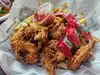 Selected the jalapeno crab bisque and crawfish hushpuppies. The bisque was smooth and just the right amount of heat. The hushpuppies had large pieces of crawfish and kernels of corn and were very tasty and not too greasy.A definite must if shopping Dallas Farmers Market!