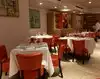 A medium sized dining room with a moderate noise level. Attractive decor. The food was good and the service polite and attentive. Worth a visit!