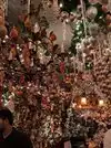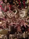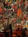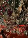 Ceiling so crammed with Christmas tree decor that each object becomes indiscernible. I had expected this to be a beautiful gracious restaurant. Instead, claustrophobic: low dense ceiling and rickety wooden booths and tables jammed together in small space to seat as many as possible. And just too damn expensive for generic German items. Filled with underdressed suburban young people. Not a place NYers go to or that anyone need experience twice.