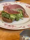 Love this place. I got some scramble eggs mixed with spinach on a bread and on top a slice of prosciutto, delicious. The home made granola delicious as well. The espresso very good. The place is cozy, nice decor.