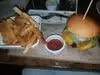 the atmosphere is contemporary, waitress was wonderful, bathrooms plentiful and spotless. Best French fries Ever! delicious burger, salads and mac and cheese.