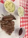Noisy, family style seating chain with solid brisket, ribs and sides. Ribs are highly seasoned, spicy, fall off the bones but brisket is average. Potato salad and beans are excellent and is the counter style service.