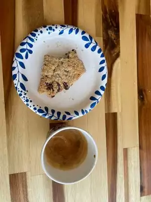 Delicious coffee and cranberry scone. Nice cozy ambience. Very relaxed atmosphere. With individual flair, not a coffee house chain like you usually find.
