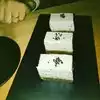 Lunch w 3 family members. Prompt seating and service at beginning of service hours. By time we finished lunch only 1 long table was open. Roasted edamame was very tasty. Never had it roasted and w dry spices on it as prepared but enjoyed an updated version of edamame. Also had 3 rolls:spicy tuna, shrimp tempura, and blue fin and avocado. Enjoyed all rolls. Liked how you can order 5 piece and 10 piece serving sizes of rolls. Dessert included mochi (hibiscus and mandarin orange flavored)and an icecream cone w sesame. All desserts were flavorful. 1st time here. Would come back again w group that likes fresh fish and can handle a limited sushi roll menu. Not for those who only eat the typical dragon rolls or cream cheese rolls as we didn't see any of those types of rolls on menu. Special lunch menu options also available.
