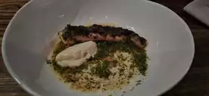 We’ve eaten here before and enjoyed the food. Our group all ordered the tasting menu. We were having a wonderful time during our first three courses, but then our waitress disappeared and another course was not in sight. After 45 minutes, found our waitress and she said our fish would be right up. Five minutes later, it appeared. But then, another wait. I got up to stretch my legs because we’d been sitting so long. I caught the eye of the manager, and our next course finally arrived. They sent us two pieces of dessert to split among the four of us as an apology. I was disappointed that the waitress didn’t come over and explain the delay instead of disappearing. She also should have managed the kitchen better, or brought us some bread to keep us entertained.