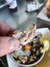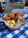 Extremely surprised at how good this was for a street food vendor on the Wharf. We opted for their fried options and got fried shrimp and fries and fish and chips. They have them in a case already pre-fried and I was skeptical on how they would taste but they were super crispy, a good portion and the fries were on point. The breading on the fish was very thick but super crisp and the fish was very moist. The only drawback was how disorganized the line was and how to order. The line was not that long but we easily waited 20 minutes for our food that was sitting in a case.