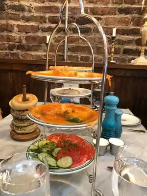 I found this place to be a wonderful place for Sunday brunch. All of the fishes were delicious and artfully prepared. I loved the French toast and the omelette. You must have a bagel you are in NY you know. Oh and don’t forget the locks and cream cheese. I’ve heard you must sample the tower of fish. I was so full I could put another item in my mouth. The staff were all pleasant and attentive. Everything came out if the kitchen hot and quickly. It would be shameful if you traveled all the way to SoHo and did not visit the wonderful place. I am sure if you keep your eyes open you will see very many famous people coming through the doors. Have fun!