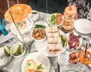 Don‘t go! Toooo expensive, we paid 80 dollars for a very tiny piece of salmon and bagel, and toast that didn‘t taste like bread . Plus Tip. It was a complete rip-off. In Europe you can eat für 80dollars two Steaks.