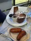 If you’re a fan of lox and bagel, this is the place! Served beautifully with all the fixings! Even had gluten free bagels that were pretty good!! It is fairly pricey, but that seemed to be the case with most places we went. Loved the atmosphere and the service was great. Didn’t like our original seat as it was right next to the service area, but they moved us and while cramped, it was much better.