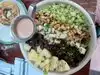 We were attracted by the stylish decor and pretty tables so agreed to the 10 minute wait for a table while we perused the menu. Our choices of Greek and Cob Salad arrived in huge bowls. They were delicious. A glass of Sancerre completed a very enjoyable lunch.