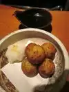 Been here a few times now as its near the office. It's simple with a large menu and well priced. There can sometimes be a wait but it was short this time. The curry meatballs were quite nice as were the squid legs. The seaweed salad and green salad were both very refreshing. I did not care for the bonito sashimi but the okonomiyaki was good as always. The hamachi kama was good but I've had better. Solid meal and go to place for a pre or post theater bite.