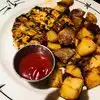 Food good. Service good. Food room temperature by time it reached me. Brussels sprouts were a good idea but way overcooked. Over reliance on marinades.