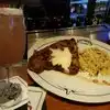 My husband had chicken fried steak and I had fried chicken strips and fried shrimp. Salads were good as usual. Their ranch dressing was great. I was shocked at the price on their mojitos either it wasn't listed or I didn't see the price. They were good but not worth $9.50 each. Other than that, no complaints. Good service as usual.