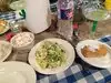 Great chopped beef sandwich. The best baked potato casserole, and squash casserole side dishes. Awesome lemon bars for dessert.