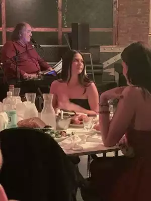 Over the years I have celebrated life at Sammy’s several times . Going back tonSammy’s is kinda like visiting an old friend but better, because I get to eat. And eat, and eat…. My last dinner at a pop up location in Midtown was just as fun as always and I brought along two newbie’s who loved Sammy’s just as much and who I know will go back and bring their friends too. Sammy’s is the kind of place you would only bring people you like, it’s meant strictly for the three F’s, Fun, Family, and Fing Food. ( that’s 4 but whatever ). It’s a flat fee for each guest and you will not go home hungry. There a large selection of meat, fish, chicken, salads and pretty much whatever else you can think of . It’s delicious, generously served and good quality. However if you are a yoga instructor who drives a Prius and watches their weight and needs peace to stay in the Fing moment in your center forget this place . It’s noisy beyond belief due to the “ Tumult “ with a capital T mostly due to the nightmare of a Israeli keyboard player who changes lyrics to suit his mood and is borderline anything and everything and funny as hell if you actually pay close attention to what this nutcase is saying . Oh . and there’s the best part, the vodka. A must do is to order the vodka which is served frozen inside a block of ice that’s pretty much a party in itself . You will have a memorable evening I promise and go home with a big doggie bag as well. Don’t give the chopped liver to the dog , it’s basically a heart attack in a bowl but too good