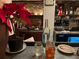 A cozy restaurant and bar is comfortable for wine and appetizers. The Burrata was recommended by the bartender and she was spot on. She also suggested we move to the other end of the bar so we could sit. Her attentiveness to our desire for more wine was terrific, even in the midst of drama spoken by waitresses and management staff in a busy and bar filled Friday night. Loved her red hair and hard work.