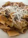 What a great value. Delicious papardelle (home-made to order) with home-made Bolognese or veg. , saugage bolognese sauces. $9.00 per entre ..wines $6-7.00 or $22.00 750 ltr. bottle. Suggest reservation if four or more.