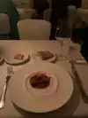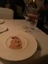 Truly impeccable service. Warm greeting. Classy room. Interesting menu with both classic and modern dishes. An amuse bouche course that was complimentary and tasty with mushroom and truffle oil ravioli. Nice salad course. The entrees were sea bass, a very good baked cod and a pasta with bolognese. Each said their entree was wonderful. A complimentary pasta was brought to the table. Wines by the bottle were impressive, but wines by the glass less so. Coffee, both espresso and americano were both very good. Not inexpensive, but for a classy, quiet business dinner, it was exactly what was needed. Recommended.