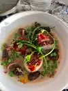 I’ve always enjoyed dining in the restaurants atop Hotel La Jolla, in their many reincarnations, going back to Elario’s, with live jazz and one of the best wine lists in Southern California. Sea and Sky, the latest, has great views over La Jolla Shores to the Pacific. We reserved one hour before sunset to enjoy some color. The June gloom rolled in, so we missed that treat. S&S offers eight starters and eight entrees. We shared the blue crab cake starter, $28, a tasty, good-sized round portion, about five inches across, with excellent crab content, trout roe, green blueberry capers, and mustard. The spicy chorizo and Manila clams starter, $28, came in a white wine, garlic, and tomato broth, and crostini for dipping, and was a little light on flavor. The daily fish, $47, halibut, a decent portion but bland, came with mashed potatoes, blistered shishito peppers, and Chinese long beans, which didn’t seem fresh. It has a decent wine by the glass list starting at $13. Corkage is $25. Service was excellent. To enjoy the setting at lower prices, visit during the daily happy hour from 3 to 5 p.m.