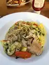 Great seafood, we had mussels and crab cakes. The portions were quite generous. The place was very busy, crowded and loud. Our food was delivered quickly, however, not so the wine. It came after we had completely finished the meal. Perhaps they could be a bit better orchestrated.