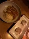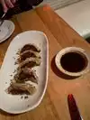 Reading about the peanut butter fat washed Blue Suede Shoes cocktail is what got us to visit the restaurant. The cocktail did not disappoint. The Shishito Peppers with Bonito Flakes were a perfect accompaniment to the cocktails. The Shrimp Crab Gyoza was delicious. The Deep Fried Pork Loin was a bit of a disappointment, bland tasting compared to the other plates. The service was attentive. The restaurant also goes out of their way to make the dining experience pleasant - there is a no tipping policy and sparkling water is complimentary. The tables are well spaced.