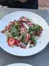 The outdoor area is very nice, but even inside gives a feeling of being outside with the open walls. The food is good, with a nice amount of kick to some of the items. They start you off with break accompanied by an assortment of olives, a nice touch. We had the Moroccan chicken soup (a special that day), the butter lettuce salad, and the free range chicken. All were quite good in quality and prep, the salad very generously sized so if we had added a protein would have been an satisfying entree by itself. The chicken had a unique (in a good way) sauce. Staff was friendly and attentive.