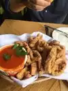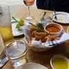 We came in for lunch and sat by the large opened doors with our 3 y o. We ordered calamari to start, then pizzas and a kale salad. There was a wedding rehearsal luncheon behind us, luckily they already got served otherwise we’d be waiting awhile. Once our food came, we were joined by 2 bees 🐝🐝 that wouldn’t leave our table. They swarmed around us for 10 min. Food was good, thanks.