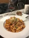 We loved being here (don't want to tell too many!!). We've passed it many times on our way up to Lincoln Center, but have not ventured in. The pastas were simply delicious - both the rigatoni in tomato basil sauce and the rigatoni bolognese (our choice to get rigatoni but many different pastas available). The pastas were simply delicious, served piping hot and al dente. Just the way we love! Generous portions as well. Despite the fact that this is a largely take-out place, there are a few tables. We loved the informality to it all. The person who took care of us was terrific and so attentive. The tomato and mozzarella salad we also ordered was beautifully presented and delicious too. We loved being there and will definitely return and recommend to others. Thank you for making us feel so at home! A true find!