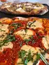 From the outside it might be hard to tell what you are getting into the first time. This is like a barnfind corvette! A little pricey yes, if you are used to cheap takeout. Oblong pizzas are not huge. We ordered two for just my wife and I. Glad we did! We were talking about the good taste that hung with us the rest of the weekend. Not much selection but they usually have a couple of specials that they add to the regular menu. Beautiful char, just right crust heft. The margarita type pizza had a different tomato sauce than the others- and it was mighty fine! I like to characterize a place by looking around at other customers. There was not a single person that was not smiling and having a great time. Understand that wood-fired pizza by nature should be simple and not overloaded and enjoy the heck out of this place!