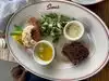 This restaurant was recommended by our hotel and they were right on. We were able to get in with no problem at 6 pm with an online reservation. The service was spot on and more importantly the food was top drawer. My wife had the grilled garlic shrimp. There were more than just a few shrimp and they were very good. I had the Halibut on a bed of zucchini and an excellent sauce. This had to be one of the best tasting fish dishes l have had in sometime. We were both very impressed with this restaurant and its high quality operation. A highly recommended place when you’re in the area.