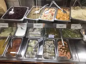 All I wanted was a bagel and cream cheese. I ordered a pumpernickel bagel with cream cheese (bagels are on the menu for $1.25) not toasted. When I got to the deli counter to pay for the bagel and handed the counterman a $5.00 bill expected to get a buck and something change. The counterman told me that I owed him another 54 cents. I looked at him as though he were from another planet and told him that there was only one bagel. he explained that the vegi cream cheese was from a very creamy place and that was what it cost. The bagel was ok the counterman wasn't. Shelsky's; Never again!!
