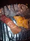There were five or so pieces of sushi that were excellent-smoked etc. most were fair and not very creative . Saki bottle they highly rec also just okay. Dishes came out fast, no atmosphere so overall an average experience.