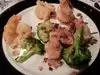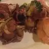 Went for the special lunch, a great value. Started with very traditional fried pork dumplings and spring rolls. Mains were very different, Mandarin prawns, Crispy duck Both seved with walnuts, broccoli and white rice. Prawns were large and generous, duck not as crispy as we'd hoped because of the sauce on top. Both very tasty. Ice cream for dessert. We have been coming here since 1988 and not disappointed. The dining room is surrounded by large, gold dragons.