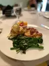 Had the chicken fried oysters - they were tasty. They were served with spinach and pasta. I really liked the pasta - it was seasoned well. This was on the fixed price menu. Had good mimosa too. The spinach could have used a bit of seasoning. My waiter was very good - Von.
