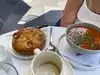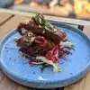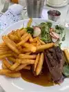Lovely outdoor seating area, oh, and plenty of seating inside as well. The server Desiree P was lovely, friendly and helpful. We went for our lunch and I has a 6oz prime “Filet Butchers Block” steak. It was cooked to perfection, warm the whole way through and rare on the inside. It was very very tasty. There were chips and a wee bit of salad dressing. My wife had soup of the day $8.00 which would remind me of the sort that cowboys would get in the films!! “Cowboy soup” not to my taste, but everyone is different. She also had tomato Focaccia ( bread) $8.00 and it was absolutely delicious. The steak might have been a little on the expensive side $39.00 but, worth it because of the way it was cooked and the tast.