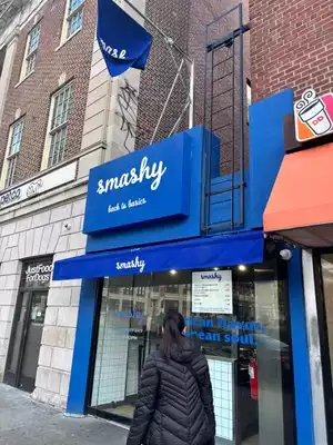 They only do one thing - take out smash cheeseburgers and fries. They do it very well and at a great price. Single Cheeseburger is $4.99 and a Double Cheeseburger is $6.99. Fries are $2.99. They have captured the flavor of the classic American cheeseburger. This is right on Union Square and it one of two locations - the other location is in Budapest, Hungary. (They have live portal so you can wave to the Budapest Smashy.). It's a take-out spot. Typical counter service. I've been twice this month.