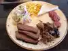 I went to this location for lunch on a Sunday afternoon. Although the menu primarily featured brunch items, there was a selection of smoked meats and sides available. I tried a sampler plate featuring brisket, sausage and pulled pork. I also ordered a small side of pork ribs. I was disappointed with the sausage and pulled pork. To me it seemed to be lacking the smokey taste and they were not particularly satisfying. The brisket was better. There was a noticeable ring of fire and the meat was juicy. The meat also had a stronger smokey taste, but not as strong as I would like. The pork ribs were the most satisfying dish. Good smokey taste with a nice bark finish on the outside. The meat was tender and easily came off the bone with each bite. For sides I had the cream corn and mashed potatoes. The mashed potatoes were average. The cream corn was very good. It tasted and appeared to be freshly prepared. I was somewhat disappointed in the service. Initially my server took time to review the menu and promptly took my order. However from that until I finished my meal, he was difficult to find. It took about 15 minutes to get my drink and he never delivered the BBQ sauce for my order. He was more attentive after I finished my meal and needed a long awaited refill on my drink.