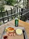 Overpriced for the quality BBQ you get. Bun was hard and meat wasn't anything special. it was about $17 dollars for the sandwich and a small side with a small thing of BBQ sauce. The only nice part about the location is that there is plenty of outdoor seating.