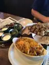 Loaded cheese fries...need I say more?? Fun place to hang out with friends, have some drinks and get some bad-for-you but oh-so-good grub!