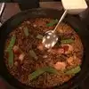 When eating paella, it should inspire your senses...but sadly this was not the case... Smell...when bringing out the paella, there should be an aroma of saffron....no fragrance at all Sight...shrimp were the frozen baby shrimp and not the whole shrimp ; usually seafood covers the paella but as you can see its barely provided Taste...rice was too wet and worse part was there is no saffron taste at all Overall, disappointing given what makes paella special is the saffron (thus the price) and when you can't taste/smell the saffron nor is the seafood presentation in anyway special ; makes you long for the days of real paella in Spain...or in other Paella restaurants in the city that actually uses saffron in the dish...