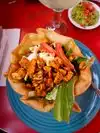 Other Mexican restaurants in the area were booked. I was able to get a reservation without difficulty. the taco salad with beef was a good side. It was served with balsamic dressing. The beef was thin sliced but tough. Family members got the enchiladas. They each said that the cheese one was better than the ones with meat The restaurant is close to many theaters. We were not impressed with the food. It was just okay