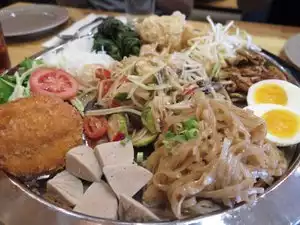 I've walked by this place several times and never ate there. I'm sorry I didn't wander in sooner. It's delicious and a great value (aka cheap). Cute is a good way to describe the decor. Service is good. I wasn't crazy about the cocktails but who cares...it's about the food and that was on point. Also, if you feel like embarassing one of your friends (I enjoy doing that), tell them it's their birthday and watch the magic unfold lol...Fried Chicken Thighs are great. I liked the garlic chips on top. Flat Rice Noodles are a must. Get it with the pork. Enjoy!