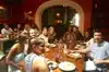 Informal atmosphere with hardy food and drink for lunch of dinner.