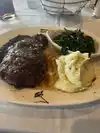 The steaks are always perfect, Mac and cheese side was great. Small detail, but the Cesar salad dressing with anchovies was delicious. Service dog friendly. The Sunday buffet is a wonderful opportunity to stuff oneself with prime rib. This time we went early on a Tuesday and got great service and food.